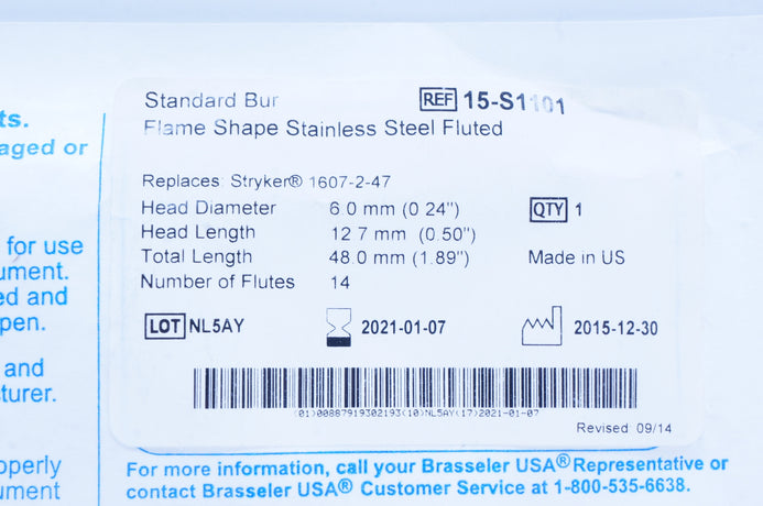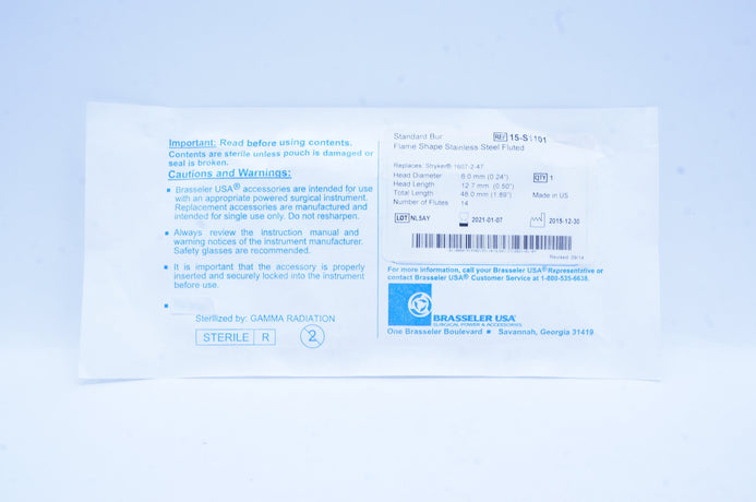 - Brasseler 15-S1101 Standard Bur Flame Shape Fluted 0.24 x 0.50 x 1.89 inch (x)