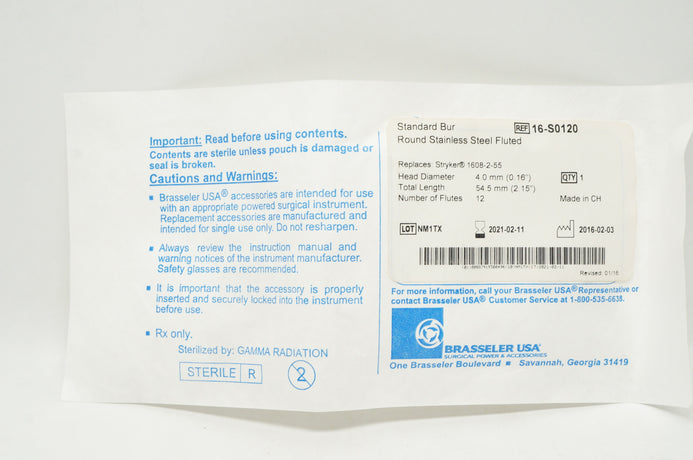 - Brasseler 16-S0120 Standard Bur Round Stainless Steel Fluted (x)