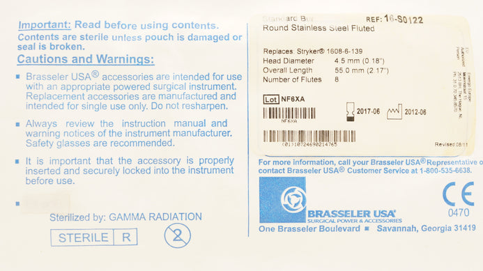 - Brasseler 16-S0122 Standard Bur Round Stainless Steel Fluted (x)