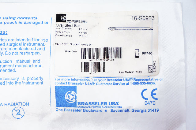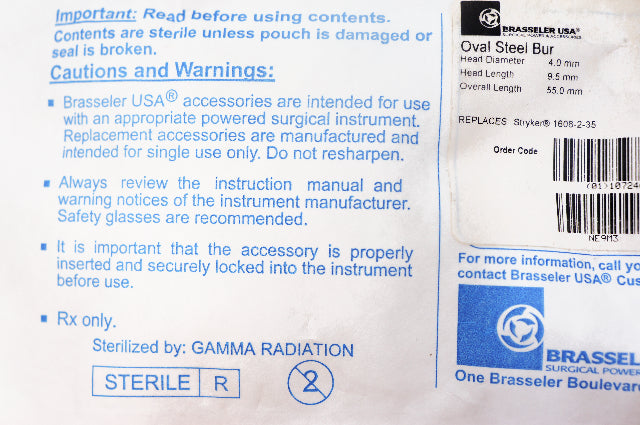 Brasseler 16-S0903 Oval Steel Bur, Diam. 4mm, Head Length 9.5mm (x)