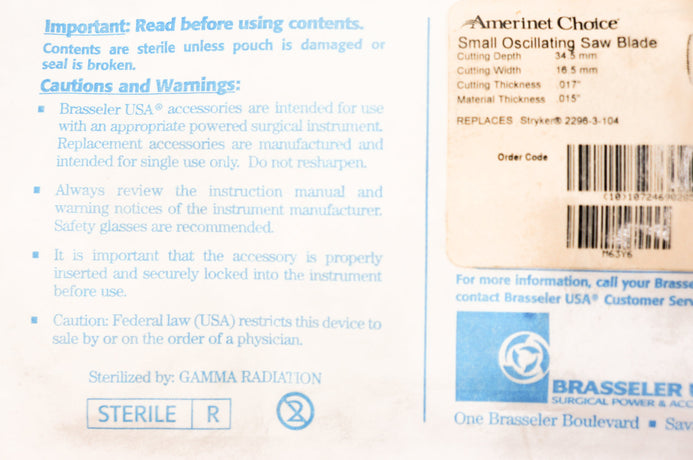 - Brasseler AC-KM3-104 Small Oscillating Saw Blade Depth 34.5mm, Width 16.5mm (x)
