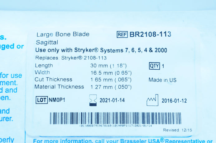 - Brasseler BR2108-113 Large Bone Blade Sagittal 1.18 x 0.65 x .065 x .050inch (x)