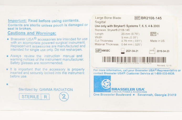 - Brasseler BR2108-145 Large Bone Blade Sagittal (x)