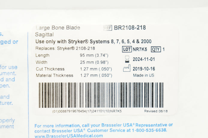 - Brasseler BR2108-218 Large Bone Blade Sagittal 3.74inch x 0.98inch
