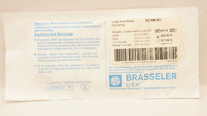 - Brasseler KM-251 Large Bone Blade Oscillating 2.36In x 1.28In x 035In x 024In(x)