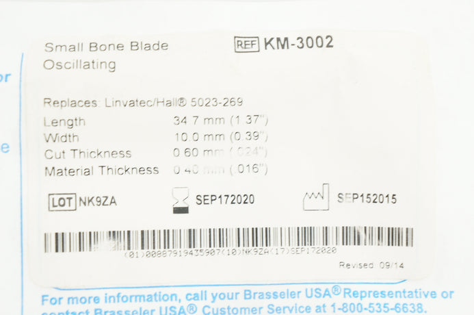 Brasseler KM-3002 Small Bone Blade Oscillating 1.37 x 0.39 x .024 x .016in. (x)