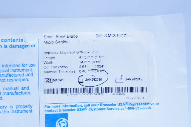 Brasseler KM-3100C Small Bone Blade Micro Sagittal 1.63 x 0.55inch (x)