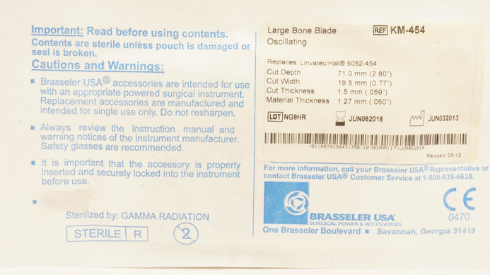 - Brasseler KM-454 Large Bone Blade Oscillating (x)
