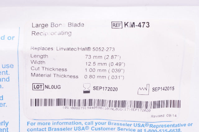 Brasseler KM-473 Large Bone Blade Reciprocating 2.87 inch x 0.49 inch x .039 inch x .031 inch