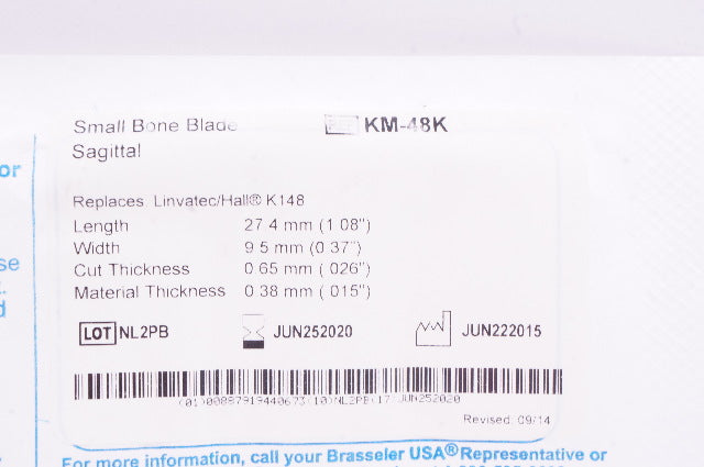 - Brasseler KM-48K Small Bone Blade Sagittal 1.08 x 0.37 x .026 x .015 inch (x)