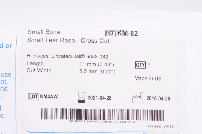 - Brasseler KM-82 Small Bone, Small Tear Rasp Cross Cut 0.43 x 0.22inch