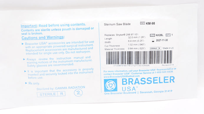 - Brasseler KM-98 Sternum Saw Blade 0.25inch x 1.26inch