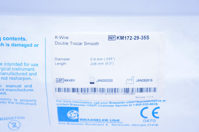 - Brasseler KM172-29-35S K-Wire Double Trocar Smooth .035inch x 9.0 inch (x)