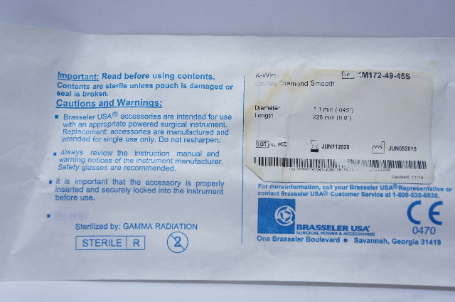 - Brasseler KM172-49-45S K-Wire Double Diamond Smooth 1.1 x 228mm (x)