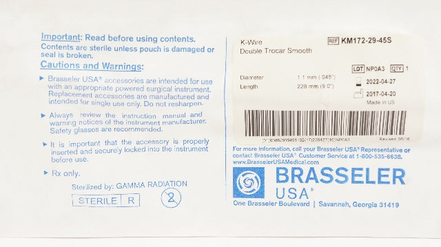 - Brasseler USA KM172-29-45S K-Wire Duble Trocar Smooth .045inch x 9.0inch (x)