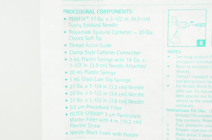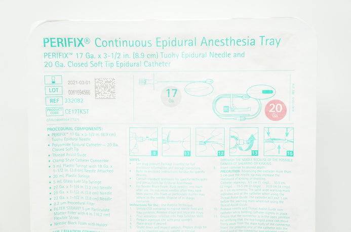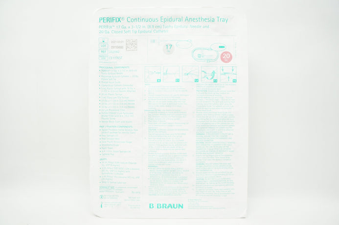 - Braun 332082 PERIFIX Continuous Epidural Anesthesia Tray 17Ga x 3-1/2in. (x)