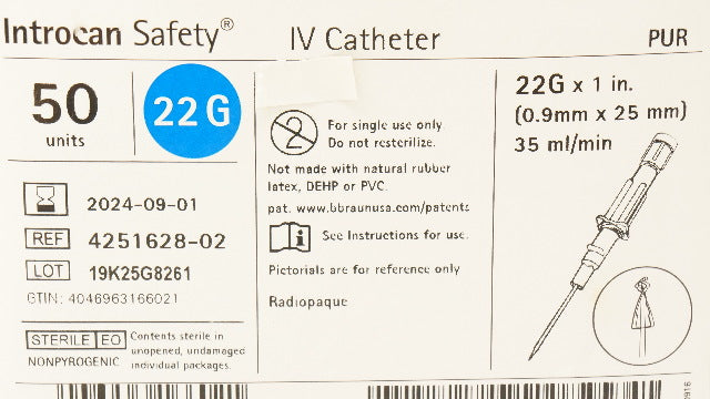 - Braun 4251628-02 Introcan Safety 22G x 1inch - Box of 50