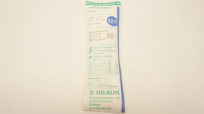 Braun 4251628-02 Introcan Safety IV Cath. 22G x 1inch 35ml/min