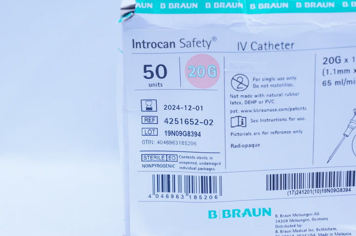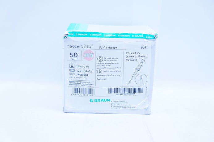 - Braun 4251652-02 Introcan Safety IV Cath. 20G x 1inch, 65ml/min - Box of 50