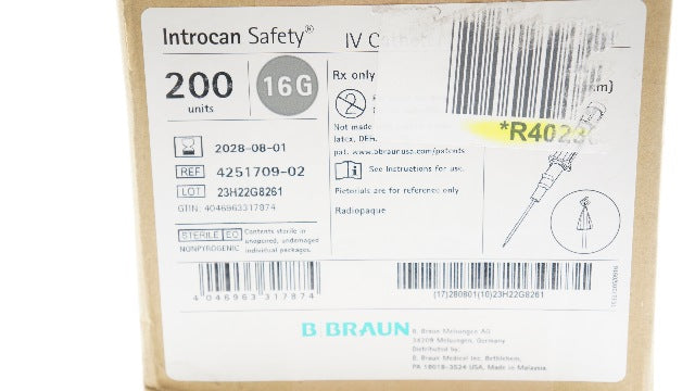 Braun 4251709-02 Introcan Safety PUR IV Cath. 16G x 1-1/4inch - Box of 200