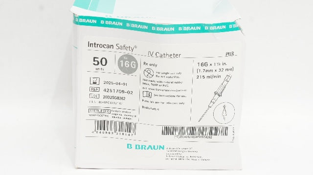 Braun 4251709-02 Introcan Safety PUR IV Cath. 16G x 1-1/4inch - Box of 25