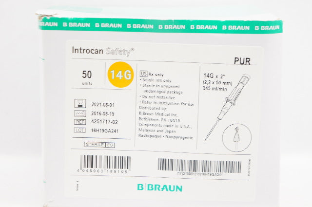 Braun 4251717-02 Introcan Safety IV Cath. 14G x 2inch - Box of 50 (x)