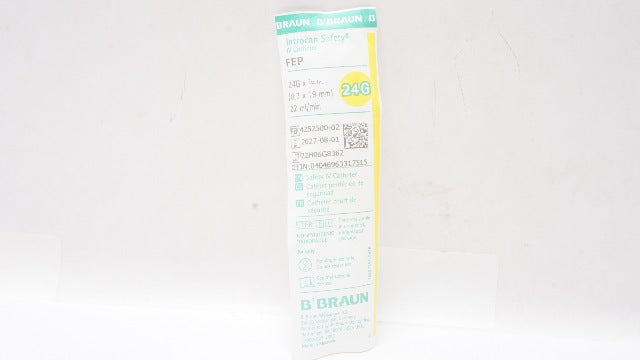 Braun 4252500-02 FEP Introcan Safety IV Catheter 24G x 3/4 inch x 22 ml/min
