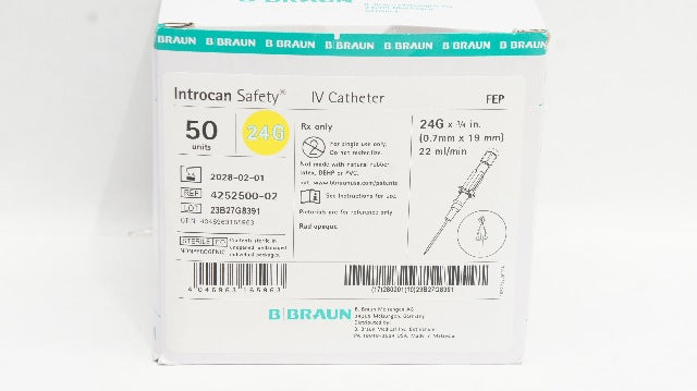 - Braun 4252500-02 Introcan Safety IV Cath. 24G x 3/4inch x 22 mL/min - Box of 50