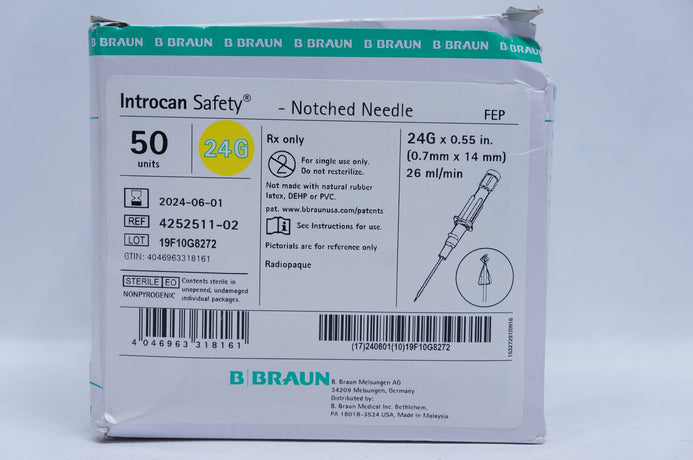 - Braun 4252511-02 Introcan Safety Notched Ndle 24G x 0.55inch - Box of 50