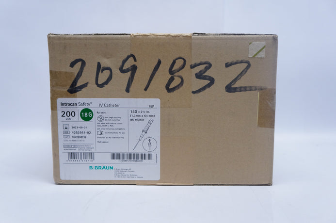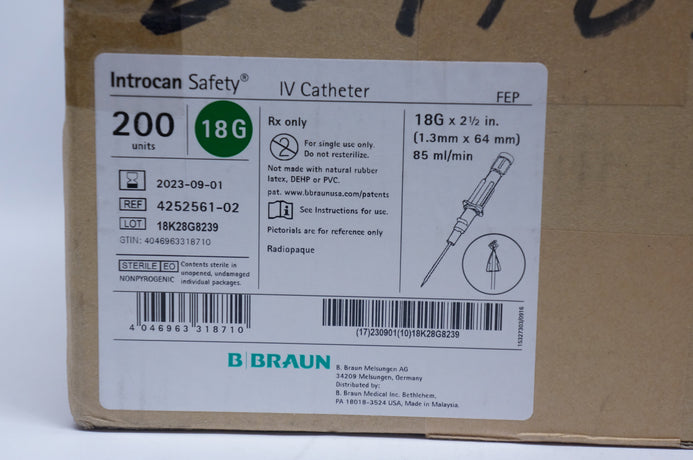 - Braun 4252561-02 Introcan Safety IV Cath. 18G 85ml/min - Case of 200