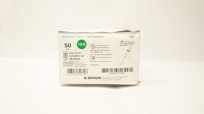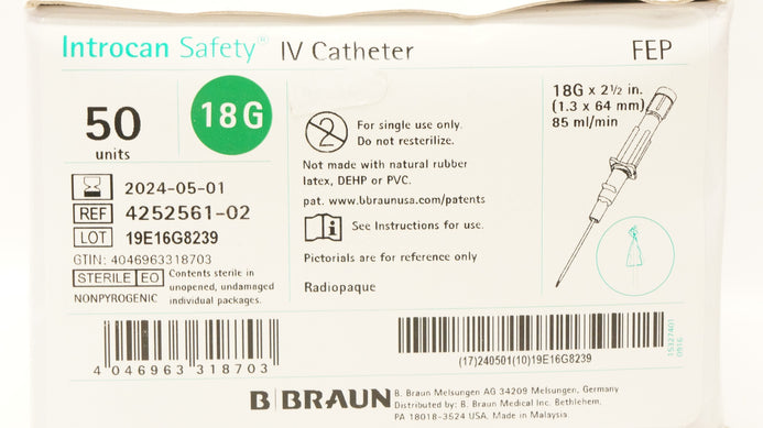 - Braun 4252561-02 Introcan Safety IV Cath. 18G x 2-1/2 inch, 85ml/min - Box of 14