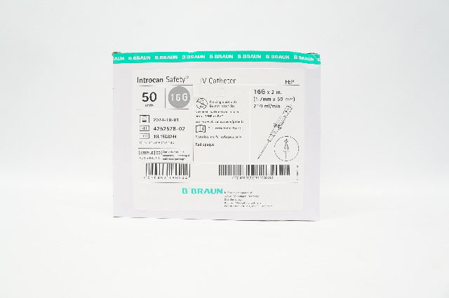 - Braun 4252578-02 Introcan Safety IV Cath. 16G x 2inch, 210ml - Box of 50