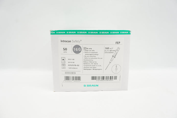 - Braun 4252578-02 Introcan Safety IV Cath. 16G x 2inch 210ml (x) - Box of 50