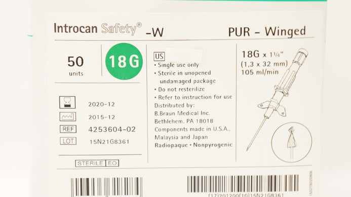- Braun 4253604-02 Introcan Safety IV Cath. 18Gx1 1/4inch 105ml/min(x) - Box of 50