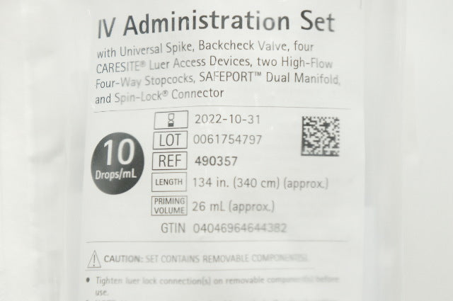 Braun  490357 IV Administration Set, 10 Drops/mL, Priming Volume 26mL, Length 134 inch (Approx.)