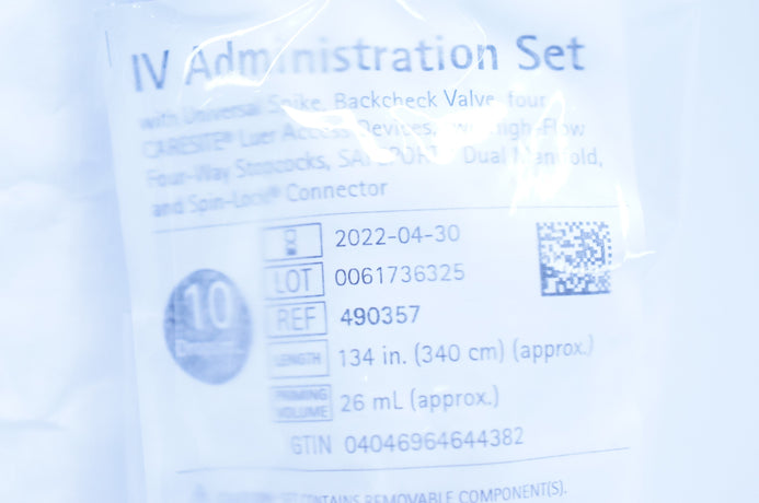 Braun 490357 IV Administration Set, 10 Drops/mL, Volume 26mL, Length 134inch