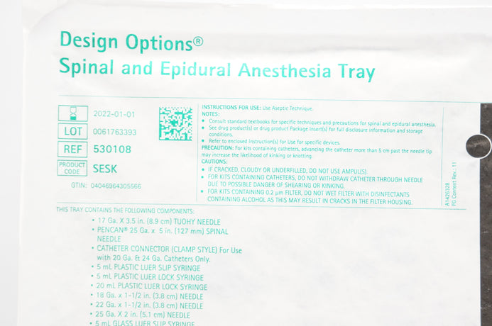 - Braun 530108 Design Options Spinal and Epidural Anesthesia Tray