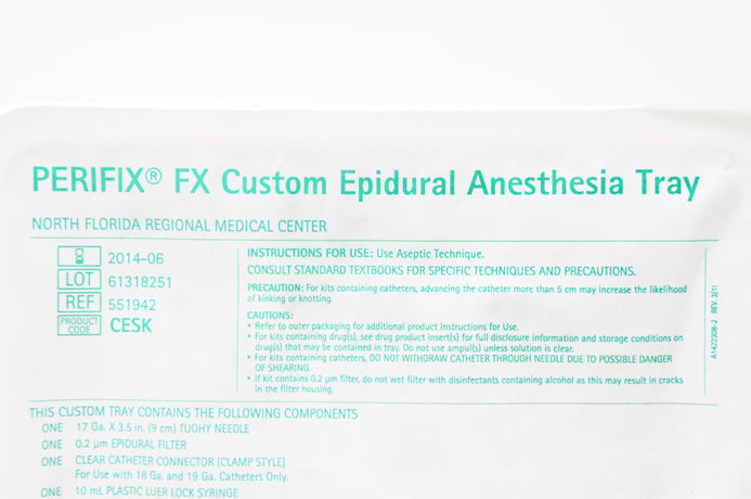 Braun 551942 Perifix FX Custom Epidural Anesthesia Tray 17Ga x 3.5inch