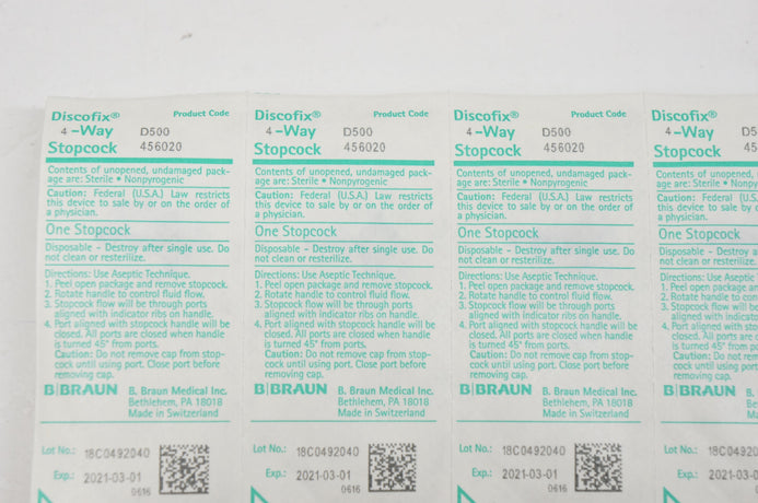 Braun D500 Discofix 4-Way Stopcock - Lot of 5