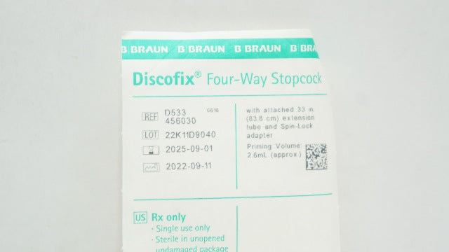 Braun D533 456030 Discofix 4-Way Stopcock with Attached 33inch Extension Tube and Spin-Lock Adapter Priming Volume 2.6ml