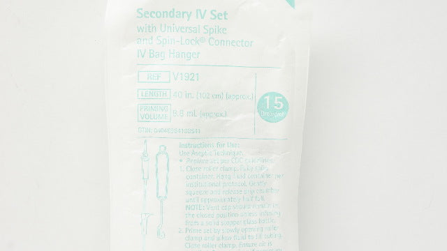 Braun V1921 Secondary IV Set With Universal Spike and Spin-Lock Connector IV Bag Hanger 15 Drops/mL 40 inch x 8.8mL