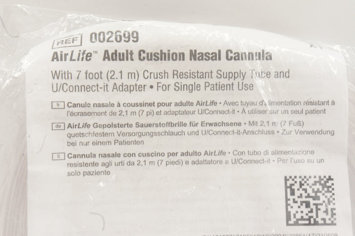 - CareFusion 002699 AirLife Adult Cushion Nasal Cannula w/7ft. Supply Tube (x)