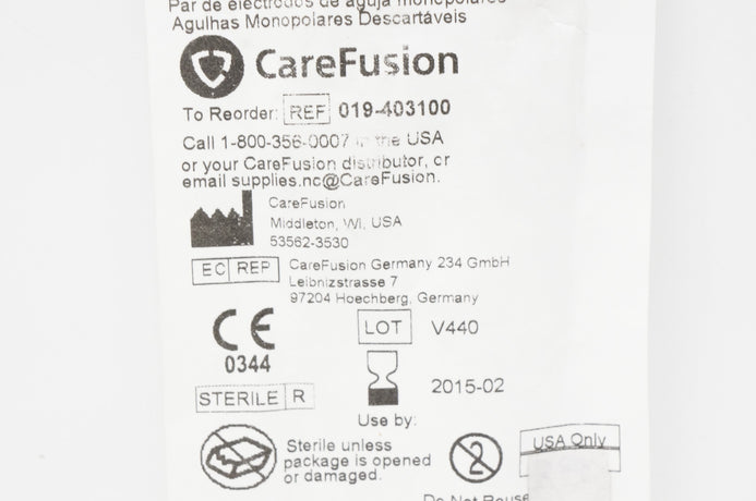 - CareFusion 019-403100 Disposable EasyGrip Monopolar EMG Electrodes 37mmx26ga (x)