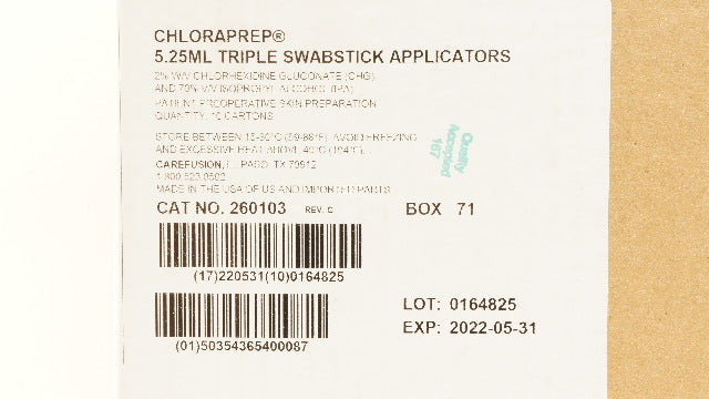 - CareFusion 260103 ChloraPrep Triple Swabstick 5.25ml Applicators - Box of 71