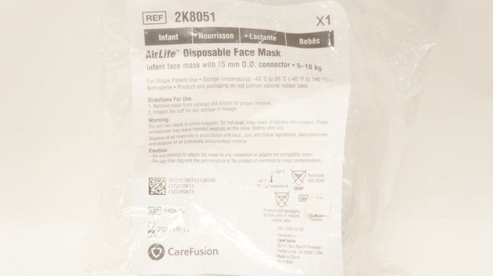- CareFusion 2K8051 AirLife Disposable Infant Face Mask w/15mm OD Connector (x)