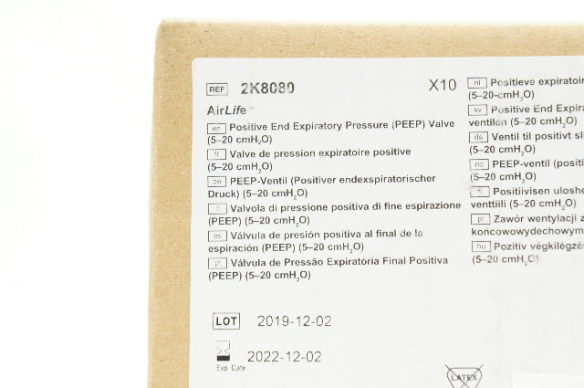 - CareFusion 2K8080 AirLife PEEP Valve (5-20 cmH2O) - Box of 10