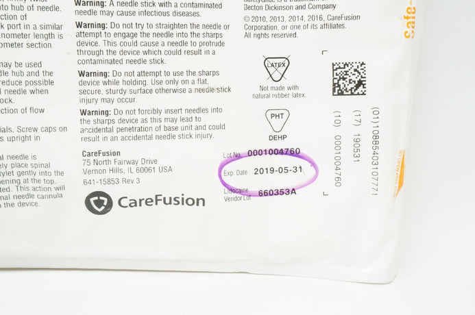 - CareFusion 4301CSP Safe-T PLUS Adult Lumbar Puncture Tray 20G x 3-1/2in. Ndle(x)