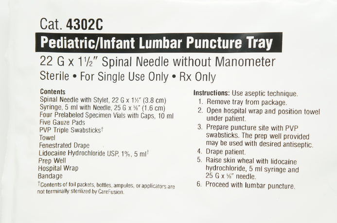- CareFusion 4302C Pediatric/Infant Lumbar Puncture Tray w/Ndle 22G x 1 1/2inch(x)