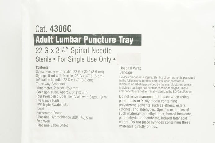 - CareFusion 4306CSP Safe-T PLUS Lumbar Puncture Tray 22Ga x 3-1/2inch (x)