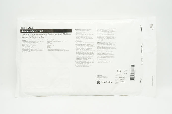 - CareFusion 4545A Amniocentesis Tray With Spinal Ndle 20 G x 3 1/2 inch